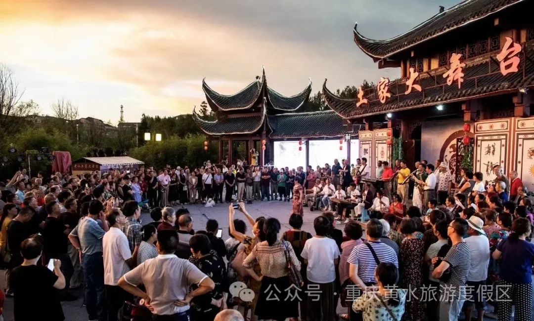 为提升度假环境品质,当地结合居民、游客的需求,不断做好生活配套和服务水平提升工作,营造高标准、高口碑的旅游市场软环境。改造康体中心、医疗中心、康复中心等医疗设施,推出“潮汐医生”服务,保障游客就医。新建沪蓉高铁黄水站,升级停车场36个,提供旅游直通车,满足游客出行需求,度假区实现1小时到重庆、3小时到成都、4小时到武汉、6小时到上海。建设精品农贸市场5个,提升旅游商店、生活超市等购物设施品质,满足常住游客的“菜篮子”,让游客在度假之余享受人间烟火气。打造文化墙、彩绘、景观文化小品等120余处,让昔日“街道”成为亮丽“街景”。基础设施不断完善,旅途更加便捷和舒适,游客们说“黄水是远方的家”。文旅融合“蝶变” 主客共享旅居度假区收获“新留量”“不见冰雪不走人,不辞长作黄水人。”来自上海的一位游客津津乐道,这里山川秀美,风光旖旎,文化活动丰富,每年都要住上大半年。每年约四分之一的游客会在黄水住满一个季度,由“客人”变“家人”,由“流量”变“留量”。为让游客进得来、留得住,当地不断丰富度假方式,常态化开展民俗文化活动,将文旅魅力展现得淋漓尽致,不断激发文旅消费新活力。啰儿调、传统舞蹈玩牛、土家族摆手舞、石柱土戏、盐运民俗展演……近年来,在黄水旅游度假区,土家文化旅游季、非遗市集等活动精彩纷呈,沉浸式的演出让游客获得满满的参与感,好评如潮。同时,以增强游客文化体验为出发点和落脚点,当地改变以往“演员台上演、游客台下看”观赏模式,倾力打造了“土家大舞台”“千人长桌宴”“万人摆手舞”“摄影书画展”等品牌文化活动,提升开放度假区图书馆、文化馆、体育公园、动步公园、休闲绿地公园等公共文体设施,满足游客公共文化需求,为旅居中的艺术爱好者提供展示平台。游客不仅是观赏者,更是表演者、体验者,与当地居民一起,共同演绎了一场场文化盛宴,成为度假区一道独特的风景线。