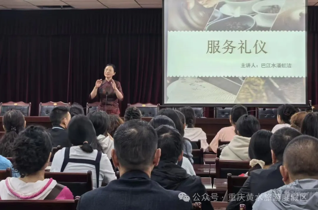 乘势而上,黄水国家级旅游度假区以提升餐饮、住宿行业服务质量为抓手,打响度假区各业态服务高质量提升第一枪。7月11日,县商务委、黄水旅游度假区综合服务中心联合邀请市级礼仪专家开展餐饮、住宿行业服务人员安全及技能培训。此次培训有关服务人员150余人。