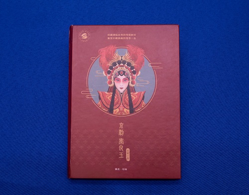 以京剧《秦良玉》原型为参考,红金色为创作色调,取秦良玉京剧装扮为基础,通过手绘创意还原秦良玉形象,辅以秦良玉凤袍衍生纹样——宝相花纹样,背面植入巾帼英雄秦良玉文化简介。 内页延用秦良玉京剧形象,辅以宝相花纹样进行装饰,并植入秦良玉诗词,呈现石柱独有的秦良玉文化。